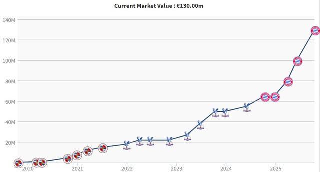 去年12月时,奥利塞的德转身价为6500万欧,在近10个月里的三次更新,奥利塞的身价分别上涨1500万欧、2000万欧、3000万欧,不到一年时间身价翻倍至1.3亿欧。